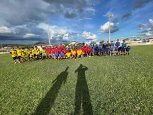 Uma tarde festiva marcou a inauguração da escolinha de futebol de campo em Sumé. O evento aconteceu neste sábado (18), no estádio “Jacintão”, e reuniu mais de 80 alunos, além de familiares e autoridades locais. A iniciativa é comandada pelo ex-vereador e desportista Cordeirinho Moto Peças.