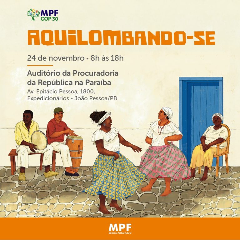 O Ministério Público Federal (MPF) promoverá, na segunda-feira, 24 de novembro de 2025, o evento Aquilombando-se , iniciativa inédita voltada ao fortalecimento do diálogo entre o MPF, comunidades quilombolas, povos de terreiro, população negra, movimentos sociais e instituições parceiras. O encontro acontecerá no auditório do MPF, em João Pessoa, das 8h às 18h.