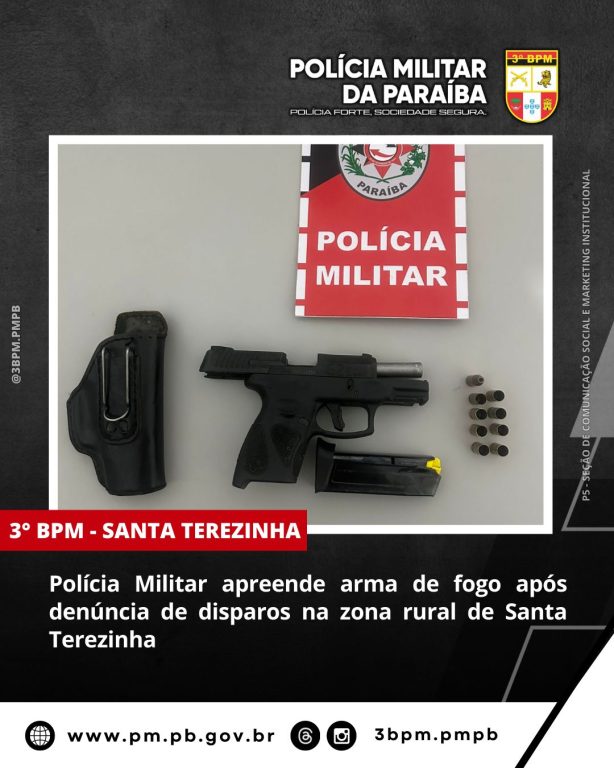 Na noite do sábado (21), a guarnição da 2ª Cia/3º BPM realizou a apreensão de uma arma de fogo após denúncia de disparos efetuados na zona rural do município de Santa Terezinha-PB.