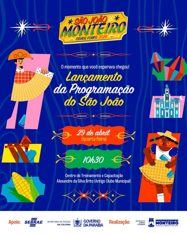 A Prefeitura de Monteiro, por meio da Secretaria de Cultura e Turismo, convida toda a população e visitantes para acompanhar o anúncio oficial da programação do São João 2026.