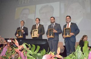 O presidente do Tribunal de Contas da Paraíba (TCE-PB), conselheiro Fábio Nogueira, recebeu na noite desta quinta-feira (13) o Prêmio Heitor Falcão. A homenagem integra a celebração pelos 50 anos de colunismo social do jornalista Abelardo Jurema Filho, que reuniu 80 personalidades e instituições paraibanas no Intermares Hall, em Cabedelo.